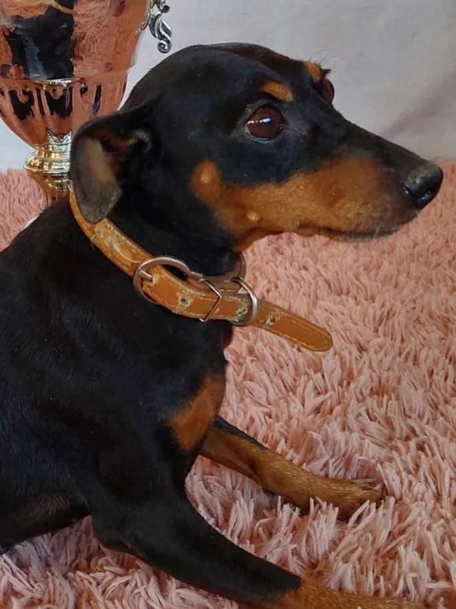 Our Extra Special girl, Alice is around six to seven years old and a very small cross-breed, with a probable high mini-pinscher content. Alice has been at our Cyprus Shelter for three months, having been found on the streets. She has a very calm and loveable disposition and weighs under 5 kilograms.