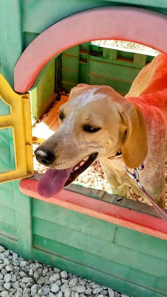 Our Extra Special girl, Honey, is, we believe, around two years old and a medium-size cross-breed, with a probable hound content. Honey has been in our Cyprus Shelter for just two weeks, having been found abandoned on the streets.