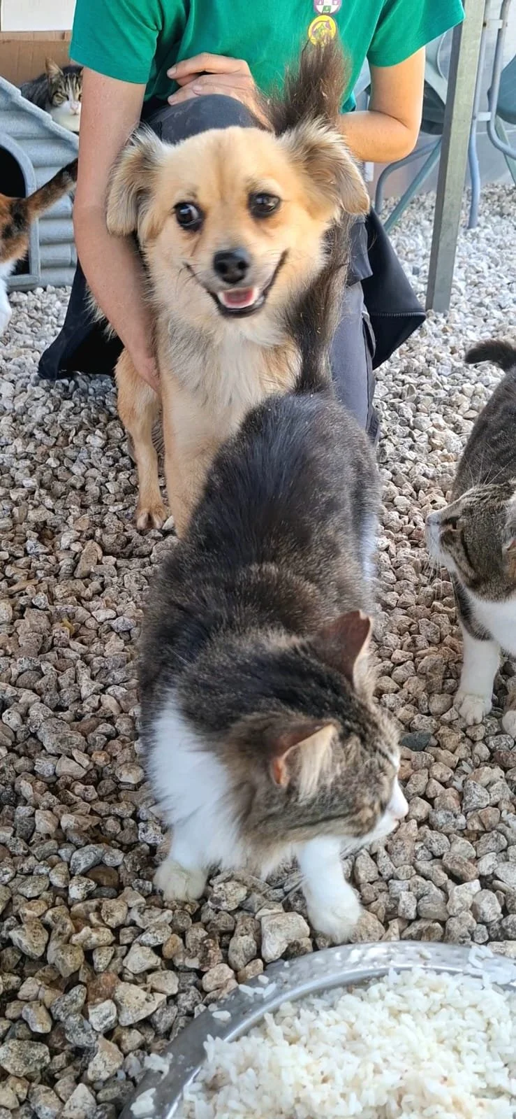 Our extra special girl Jodie is approximately two years old and the prettiest little cross breed with a very strong Kokoni content. Jodie weighs just six kilos and measures eight inches from shoulder to paw. Having been surrendered by her owner, Jodie has been in our Cyprus shelter for two weeks.