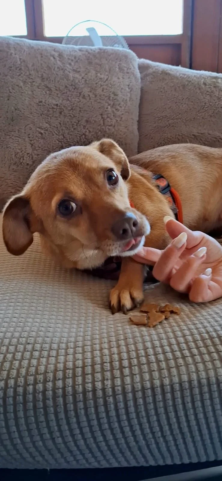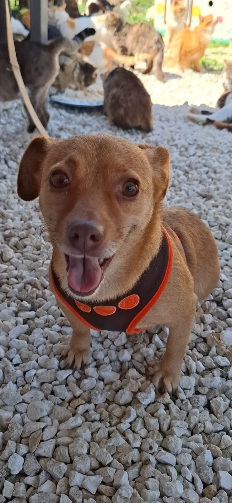 Our extra special girl Lizzie is approximately five years old and a very small cross breed with something of a mini pinscher about her and possibly terrier too. Lizzie weighs just seven kilos and measures seven inches from shoulder to paw. Having been found abandoned on the streets, Lizzie has been in our Cyprus shelter for two weeks.