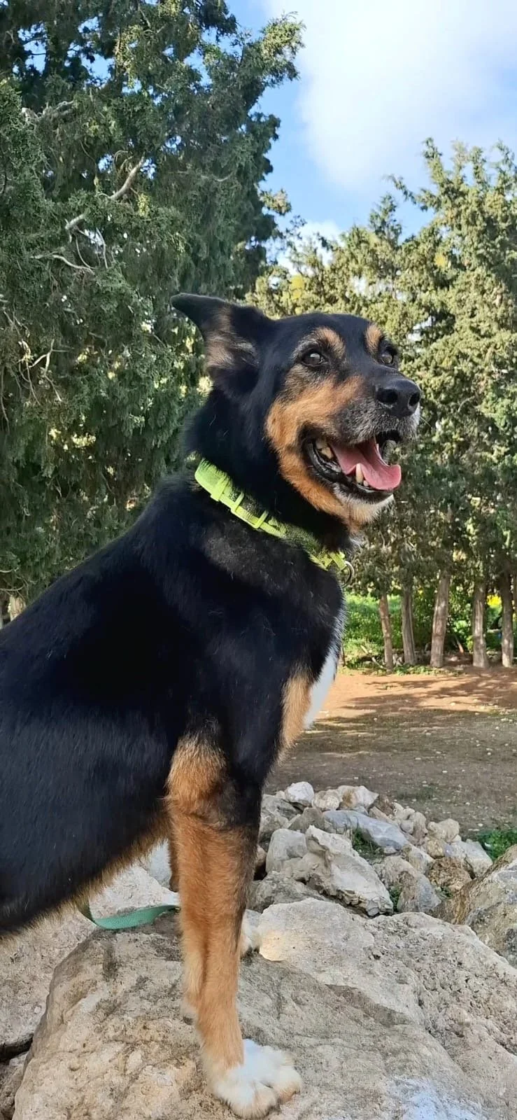 Our extra special girl Lola is approximately five years old and a German Shepherd dog or thereabouts. Lola weighs twenty-five kilos and measures eighteen inches from shoulder to paw. She was a much-loved dog by her family who had to leave the country under the most tragic circumstances. Hence Lola has been in our Cyprus shelter for over six months.