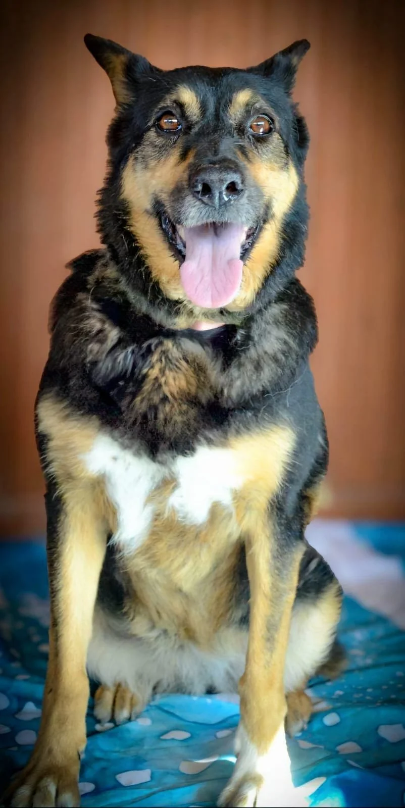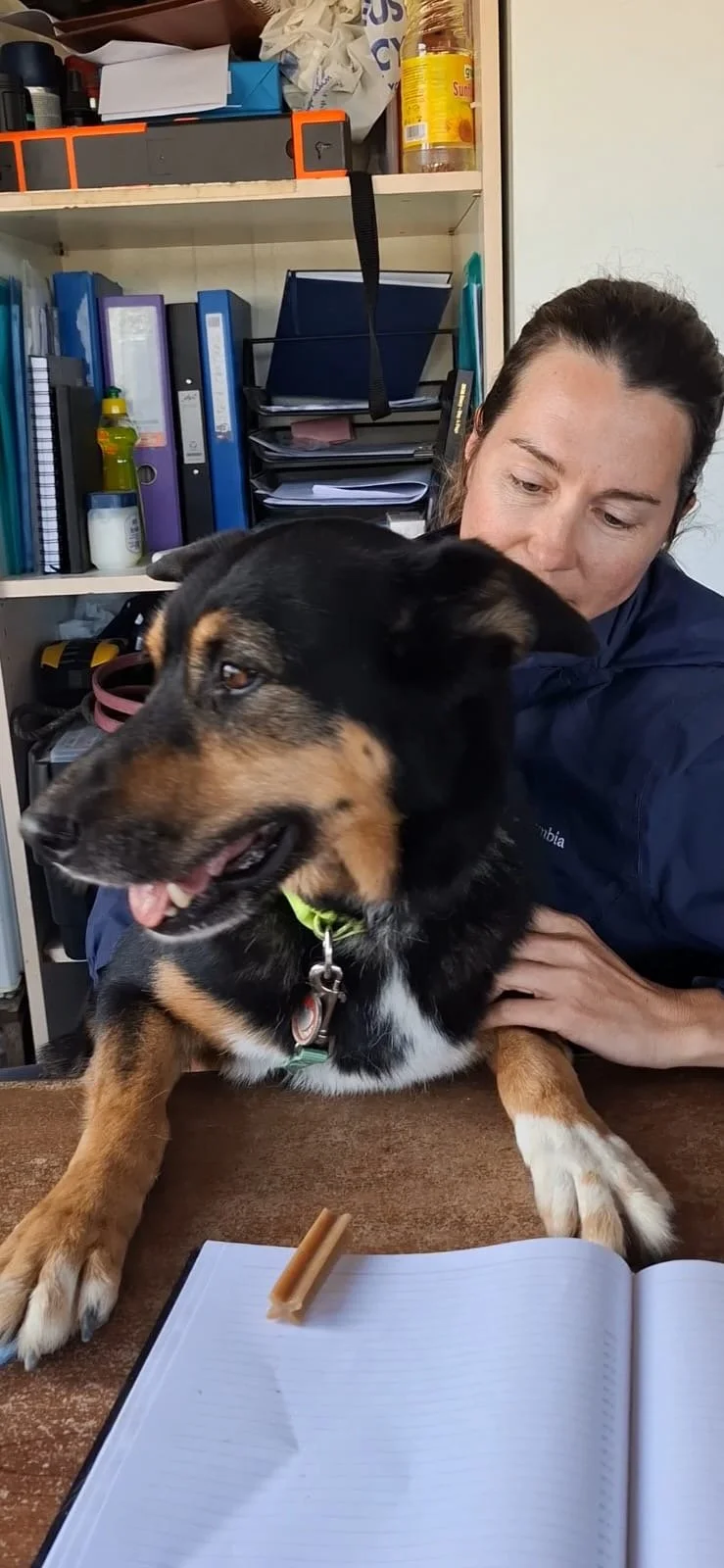 Her amazing tricolour is beautifully enhanced by her white tips. Lola is an absolute star and the perfect adoption candidate for a very fortunate adopting family.