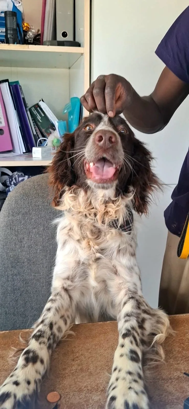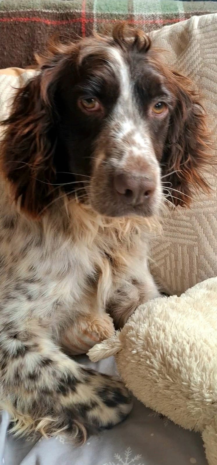 Our extra special boy Parker is approximately three years old and almost certainly a spaniel of sorts. Parker weighs a perfect fifteen kilos and measures eighteen inches from shoulder to paw. Having been abandoned on the streets, Parker has been for a month in our Cyprus shelter.